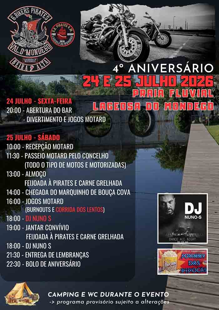 24 e 25 de Julho – 4º Aniversário do Grupo Bikers Pirates Vale do Mondego – Lageosa do Mondego